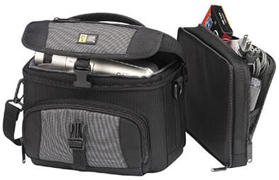 En väska som passar bra till videokamera eller systemkamera med ett extra objektiv..