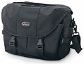 Inköptes för att den var stor och rymlig och att jag inte ville ha en ryggsäck. I min kravlista ingick att den skulle kunna rymma ett stående stort kamerahus med ett 70-200 monterat och minst 2-3 andra objektiv, blixt, och lite annat vilket den utan problem uppfyller. Tyvärr är den rymlig i överkant vilket gör att den ofta blir tyngre vilket gör att belastningen på axeln blir ganska stor, detta avslöjar sig även ganska fort i och med att den axelrem som följer med i mitt tycke är helt värdelös, då den vill ställa sig på "högkant" och belasta hela väskans vikt på en 1 cm bred yta. En bättre rem är ett måste enligt min mening, lowepro säljer tex en egen som de påstår ska vara bättre. En annan detalj som är irriterade att de två fickorna på framsidan ej har separata lock utan skyddas av det stora yttre locket. Detta gör att man ogärna förvara småsaker som filter osv då de om väskan tippas eller välter teoretiskt skulle kunna ramla ut, dock är fickorna perfekt till anteckningsblock osv. En bra detalj är att det finns en dragkedja i locket vilket gör att man kan plocka upp kameran utan att öppna upp hela väskan, detta förutsätter dock att objektivet är rimligt stort då man kan behöva knixa lite, men för huset med normalen är det perfekt.