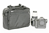 Axelväska med diskret "datorväska-design" i slitstarkt material. Rymmer medelstor DSLR med monterat batteripack och 70-210/2,8 samt ytterligare två objektiv, blixt och annat krafs som man har med sig. Ytterligare två kamerahus (utan objektiv och vertikalgrepp)får plats i ytterfickorna om man vill. Regnskydd i form av överdrag följer med, tillsammans med ett minneskortsfodral.
