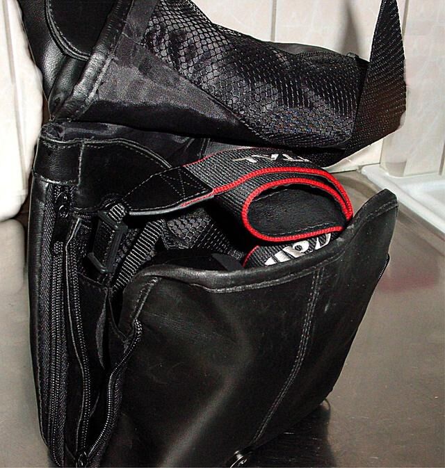 Jag är en 110-procentig amatörfotograf som gärna tar med mig kameran när jag går ut. Jag tycker dock ej om de fotoväskor som finns i dag, dom är för avancerade för mig. Jag vill bara ha en väska som ser ut som en vanlig väska, men också kan fungera som en fotoväska. Denna "ergonmiskt" ? riktiga väska hittade jag på en postorder och den fungerar alldeles utmärkt både som handväska och kameraväska. Den är av dragspelsmodell, har ett femtontal fack, kan bäras framtill och på ryggen. Jag har haft den i cirka ett år nu och jag är mycket nöjd med den.