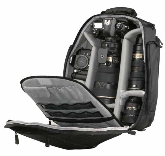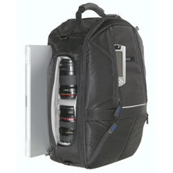 Multifunktionsryggsäck för digitala fotografer. Rymmer en 15" dator, ett kamerahus samt fyra objektiv.