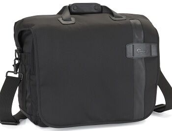 PLUS: Det är en axelväska, bra tillgång (ovanifrån) till ett utrymme i perfekt storlek för en kamera, några objektiv (3 st 2,8-zoomar varav ett monterat på kameran, blixtar eller flera fasta objektiv) och dator. Ser (jämfört med andra kameraväskor) lite anonym ut. MINUS: Det är en Lowepro. Väskan har plastdetaljer som lätt går sönder. Väskan blir enkelt för tung för att kunna användas medan man fotograferar och den blir mest något jag använder för att transportera utrustningen. Uselt axelband, och den känns också väldigt fet i djupled!