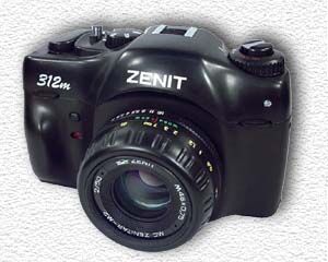 Tredje generationens Zenit 12. Robust kamerakropp av helgjuten aluminium vilken är klädd i trendigt formad plast. TTL-ljusmätning med lysdiodsindikation i sökaren.