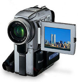 MiniDV-videokamera med 1.55 megapixel digital stillbild.Zeiss optik, 1,55 miljoner pixlar CCD, Intelligent tillbehörssko, Super NightShot,DV in/ut, Analog in/ut,Bluetooth trådlös ...