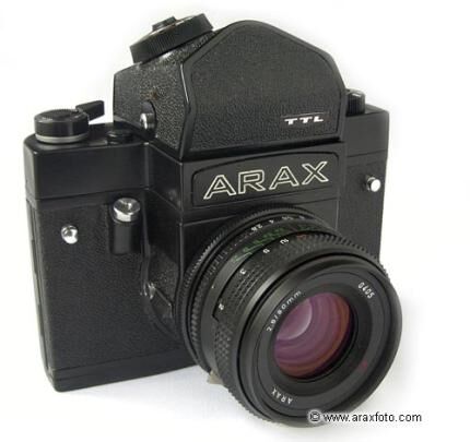 Billig och (för mig) tillräckligt bra ukrainsk mellanformatskamera. Arax-60 är en Kiev-60 som byggs om och justeras av Arax. Den medföljande Arsat 80mm är skarp, men man måste tejpa för skärpedjupsspaken som sitter på objektivet, annars kan man få problem med ströljus. Det är inget större problem eftersom det sitter en till skärpedjupsspak på kamerahuset.