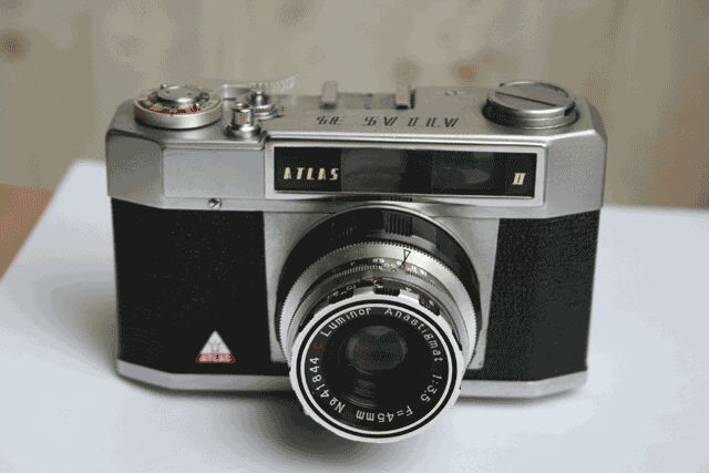 135films kamera 24x36mm negativ.Vikt 425gram,metall med klädsel.Objektiv:Luninor Anastigmat 1:3,5 f = 45mm bl:3,5-16.Slutartid B-25-50-100 och 1/300delssecund,närgräns 1m-oändlig.Blixtsko,uttag ...
