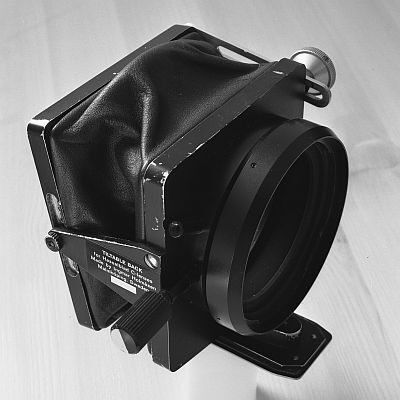 Detta är föregångaren (och inspiratören) till Hasselblads Flexbody.Naturfotografen Ingmar Holmåsen/N konstruerade lutbara kamerahus till Hasselbladsoptiken redan på 1950-talet. På denna senare ...