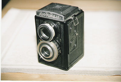 Enkel tvåögd mellanformatare av rysk tillverkning från tidigt 50-tal.