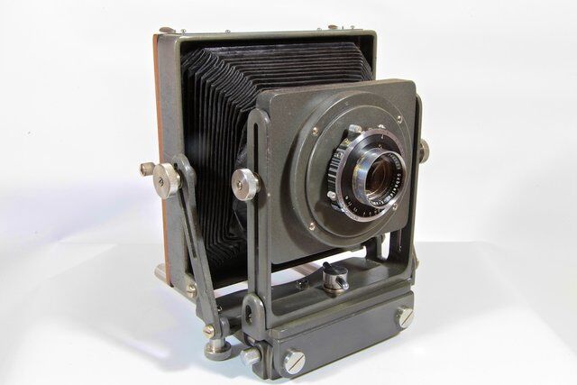 Ovanlig storformatskamera från tidigt 1950-tal med möjlighet för både 4x5" och 5x7" negativ. Såldes av FNS Foto AB, en förkortning av importörerna Forsners, Nerliens och Stöltens butiker. Troligen av ...Läs mer