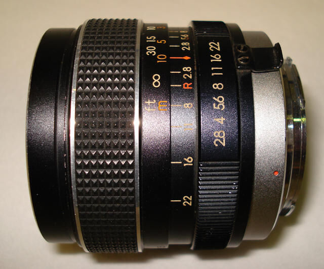 Ett objektiv från tidiga 1970-tal (kanske tom 1960-tal). Skarp, fin känsla i fokusringen, relativ ljus (f1:2,8). Exemplar recenserat av mig har gammal bajonettfattning till Minolta som gör det svårt att använda till någon av nya kameror (spec. adapt. behövs). Antireflexbehandling på den tiden var inte av bästa kvalité så det kan vara problem med motljus.