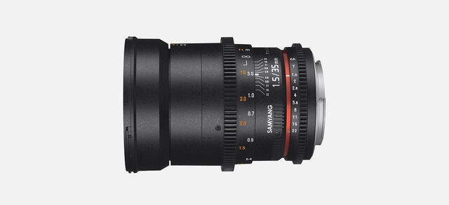 Detta objektiv är speciellt utvecklat för filmning med fokusföljande system. Det är kompatibelt med DSLR-kameror med 24x36mm bildsensor och mindre. Objektivet baseras på den tidigare modellen Samyang 35/1,4 AS UMC, men har anpassats för filmning med en ljusstyrka motsvarande T/1,5. För att underlätta avläsning av fokus- och bländarvärden är skalstegen placerad parallellt med objektivet längdaxel.