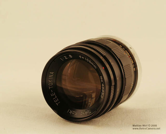 Tele-Tokina 105mm/2.8 T-mount (kan anpassas till olika fattningar som t.ex. M42). Preset, en extra ring för att ställa in bländaren. Märkt med Tokyo-Koki på filterringen. En mycket tidig modell från Tokina.