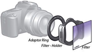 En filterhållare för kvadratiska eller rektangulärar filter med en bredd på 100mm. Monteras på objektivet med hjälp av adapterring för aktuell filtergänga och/eller step up-ringar.