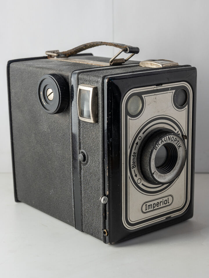 Lådkamera med fast optik ca 125 mm. Tillverkad på 50-talet i Tyskland.