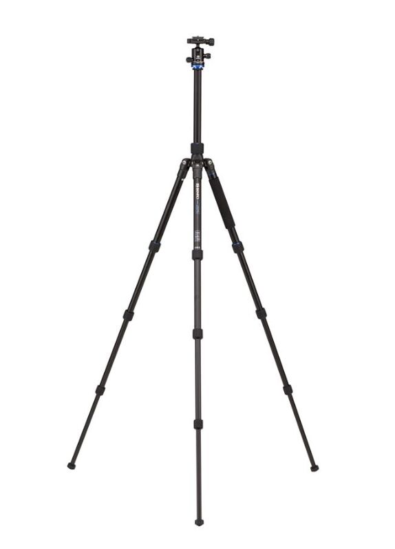 Aluminiumstativ med Benro B0 Ball head. Ett löstagbart ben för en monopod. Levereras med 'spikar' som komplement till de vanliga skorna. Monopoden kan också användas som gångstav (knopp medföljer).
