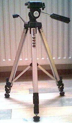 Ett gammal stativ, klumpigt men det står stabilt.