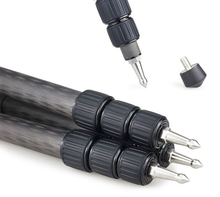 Ben med fyra sektioner hålls på plats av vrid lås och kan justeras oberoende.