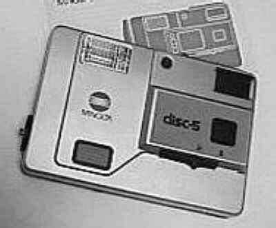 Äldre Minolta kompaktkamera. Använde Disc-film, d.v.s. en rund pappskiva med 15 små negativ i cirkel.