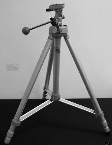 Lätt och enkelt alu-stativ med huvud och skruvning av benen. Står hyggligt stadigt men bär ingen större last. Huvudet går att tippa för vertikalläge, men skruven håller inte helt fast. Finns ej ens reservdelar längre - ersatt av närmast Slik Pro 400.