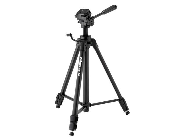 DF-60/F är ett medelstort, lätt stativ utrustat med 3-vägs huvud, vattenpass, vevhiss, 3-sektionsben, benstöd och gummifötter.
